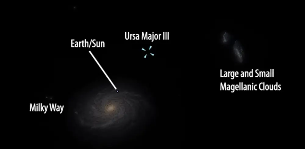 Велика Ведмедиця III один із найбільш загадкових об’єктів поблизу Чумацького Шляху. Відкритий у 2023-2024 роках, він розташований приблизно за 10 кпк від Сонця (трохи більше 30 000 св. років) і має надзвичайно низьку світність. Саме тому навколо нього точиться дискусія: це ультратьмяна карликова галактика з великою часткою темної матерії чи «темне зоряне скупчення», у якому гравітацію тримає ядро з компактних залишків чорних дір і нейтронних зір?